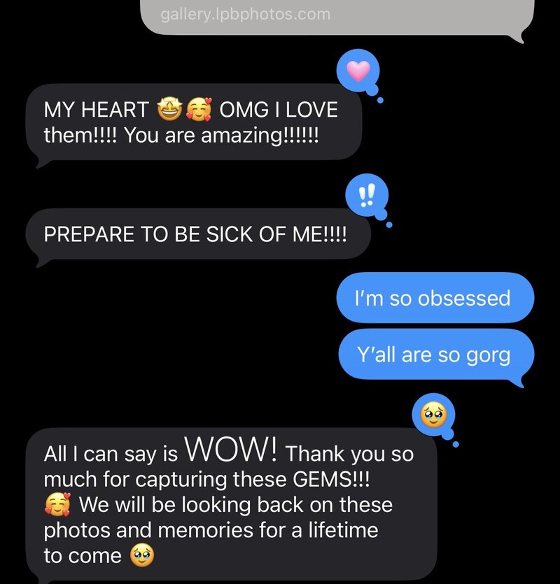 "Couldn’t have asked for a better photographer, truly the best. Tanner and I couldn’t stop laughing and smiling for our photos. We truly enjoyed our time with Whitney. She did a great job guiding tanner for his first shoot and was the sweetest soul the whole time. Didn’t make it feel like we were at a photoshoot but just all hanging out enjoying the beautiful day."